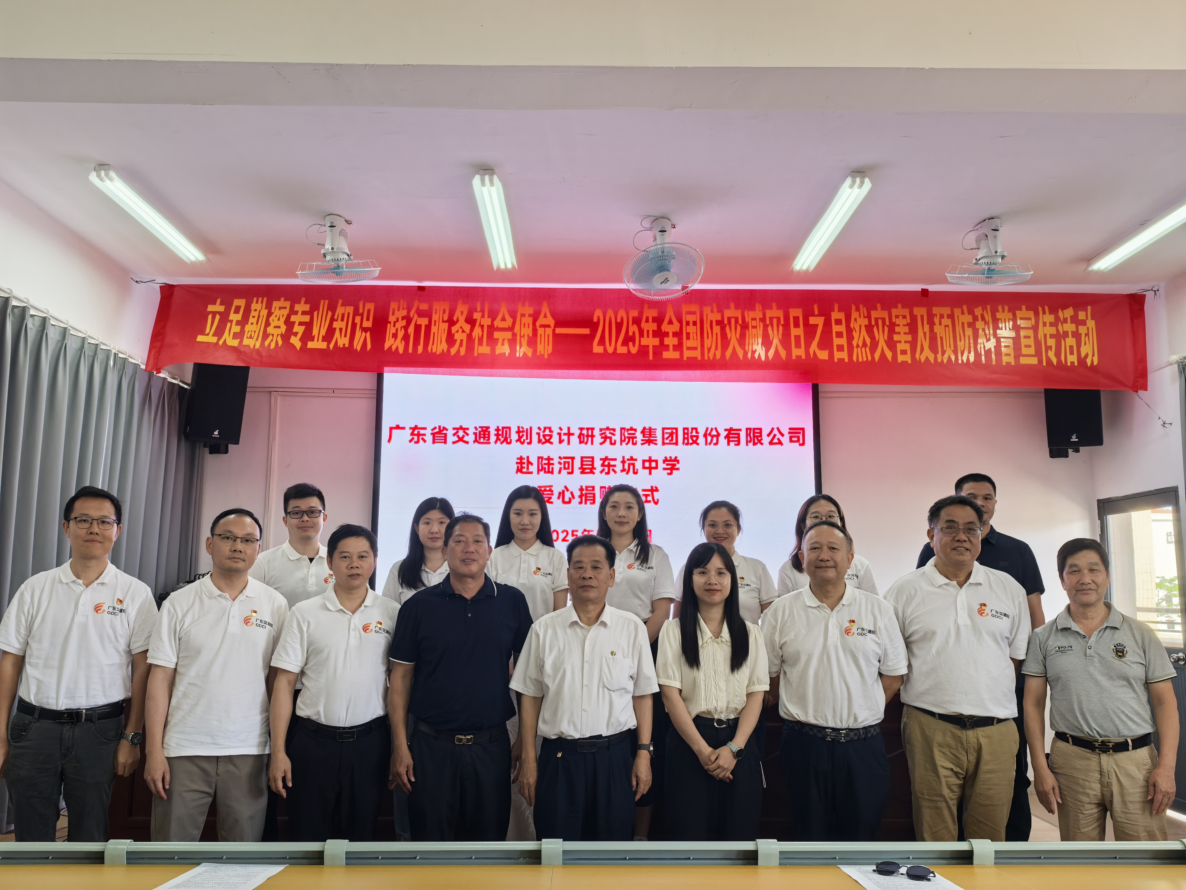 2025年512日是第17个全国防灾减灾日,今年的主题是“人人讲安全、个个会应急——排查身边灾害隐患”,512日至18日为防灾减灾宣传周。为深入贯彻落实习近平总书记关于防灾减灾救灾重要论述精神及党中央、国务院决策部署,切实推动防灾减灾科普宣教工作走深走实,516日下午,由公司党委委员、纪委书记、副总经理田可耕和工程勘察院组成的第八党支部联合由公司总工程师孙向东、总工程师办公室、科技质量部、财务管理部、董事会办公室、综合管理办公室组成的第十二党支部开展支部共建活动,赴陆河县东坑中学开展防灾减灾主题科普宣传活动,用实际行动践行304am永利集团官网,为基层防灾减灾建设添砖加瓦。