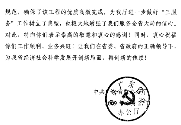 省委关于珠岛“两桥一路”改造工程的《感谢信》
