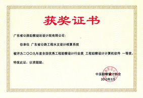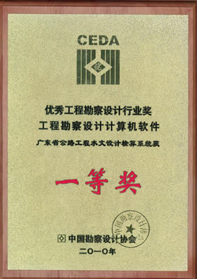 “广东省公路工程水文设计检算系统”项目荣获“2009年度全国优秀工程勘察设计行业奖工程勘察设计计算机软件一等奖”
