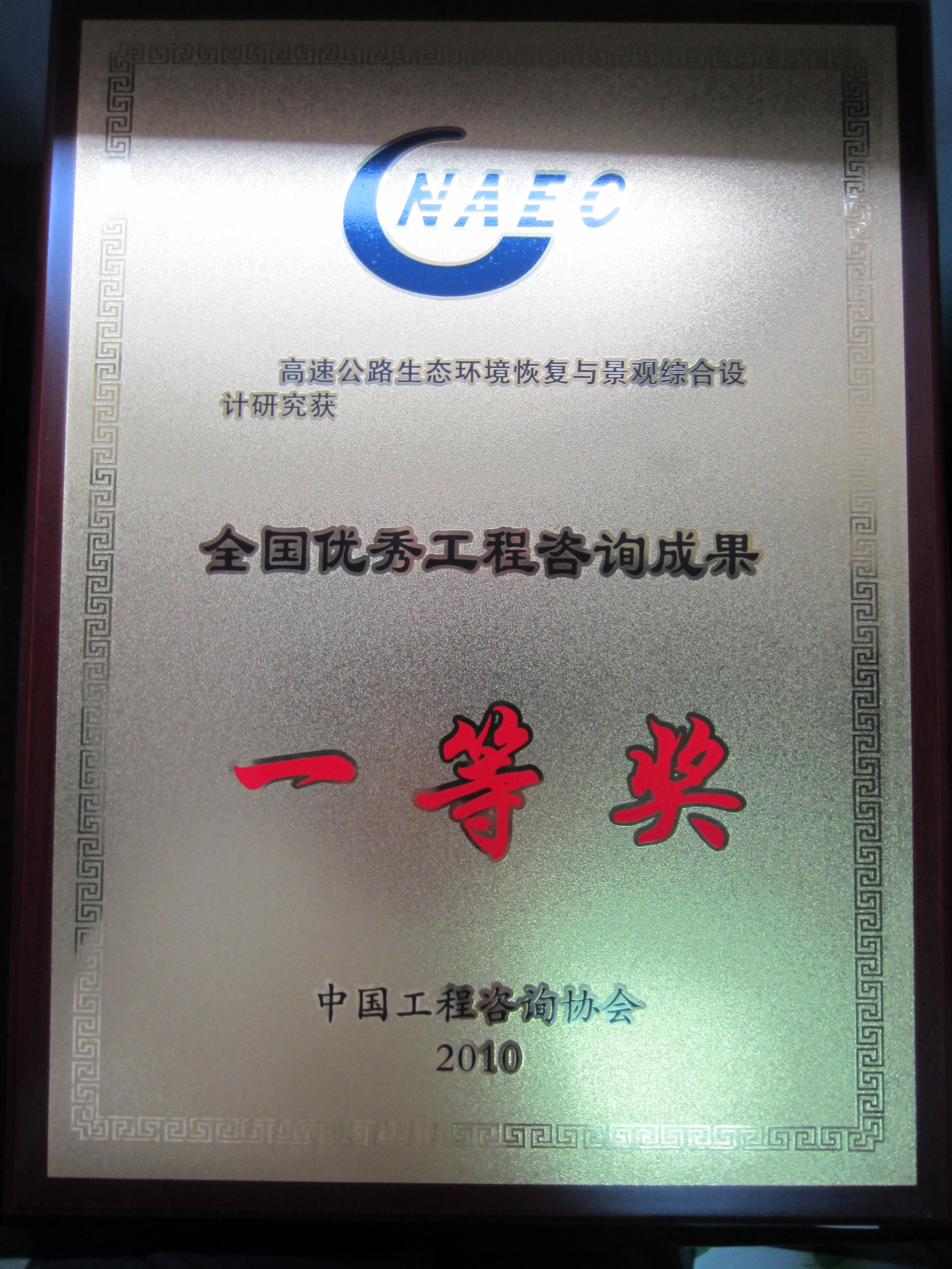“高速公路生态环境恢复与景观综合设计研究”项目荣获“2010年度全国优秀工程咨询成果一等奖