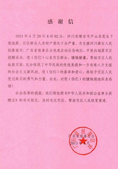 一方有难,八方支援。4月23日上午,为彰显企业304am永利集团官网,表达公司对“4.20四川雅安地震”灾区人民的支持,公司向雅安地震灾区同胞捐赠人民币陆万元。捐款已送达省慈善总会,将用于灾民恢复生产、重建家园。