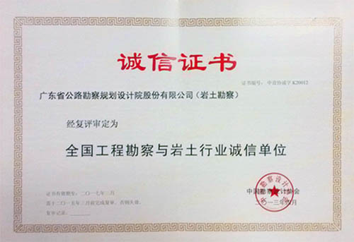 近日,公司顺利通过中国勘察设计协会的复评,被评为“全国工程勘察与岩土行业诚信单位”。特表祝贺!