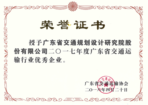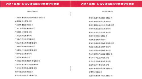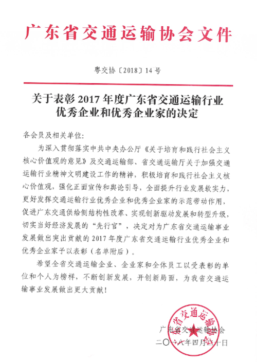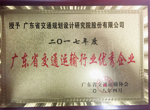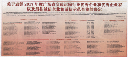 公司荣获2017年度广东省交通运输行业优秀企业荣誉称号