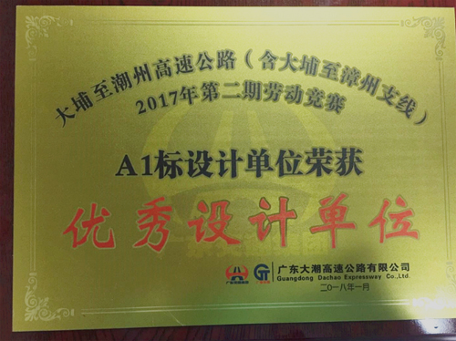 为进一步贯彻落实“双标”管理,在工作中狠抓落实,努力促进大潮高速公路项目的质量、安全管理水平进一步提升,实现打造大潮项目“品质工程”、“平安工地”的目标。广东大潮高速公路有限公司组织开展了第二期劳动竞赛评比活动。 劳动竞赛紧紧围绕大潮高速公路总体规划和具体要求,坚持高标准、严要求,积极开展以优质、安全、高效、创新、廉洁为主要内容,切实推进大潮高速公路“品质工程”建设。 经评比,我司荣获本期评比的优秀设计单位。