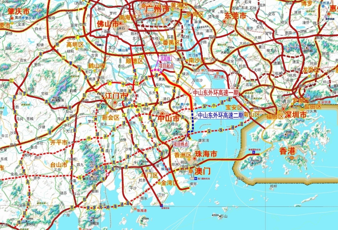 中山东部外环高速公路纵贯中山市东部,呈南北走向,是珠三角“A”字型交通骨架中的重要节点以及深中通道往南、往北的集散通道和珠江口西岸沿江通道的重要组成部分,其工程建设对于完善粤港澳大湾区交通基础设施的互联互通具有重要意义。