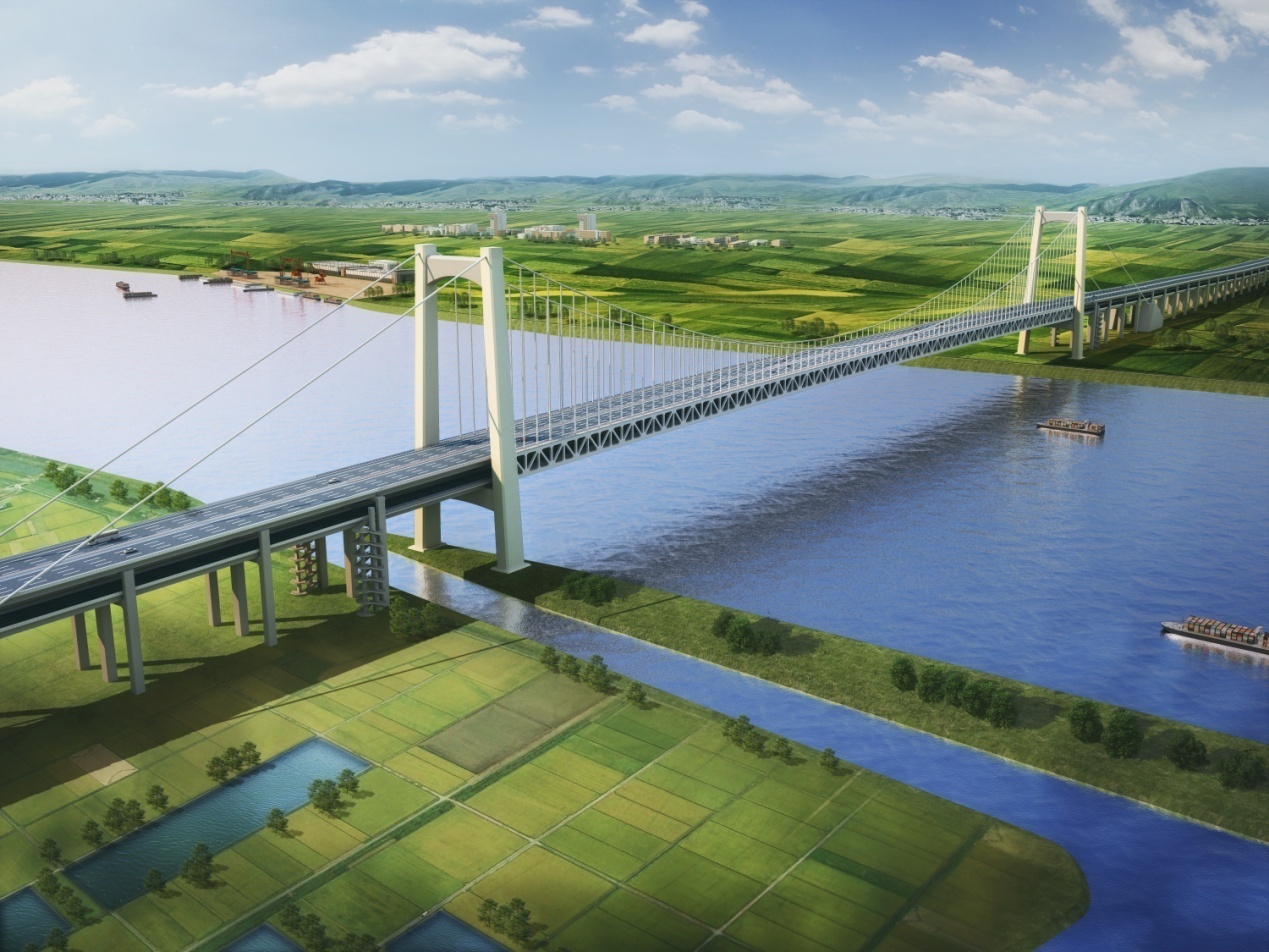 横门特大桥采用了高速公路与民古路合建的双层桥梁,上下层均为双向八车道标准。主桥初步推荐采用主跨880米的单跨悬吊钢桁梁悬索桥;主桁为华伦式桁架。全缆跨度布置为290+880+290=1460m,边主跨比0.33,矢跨比1/10