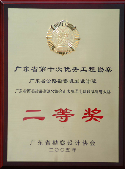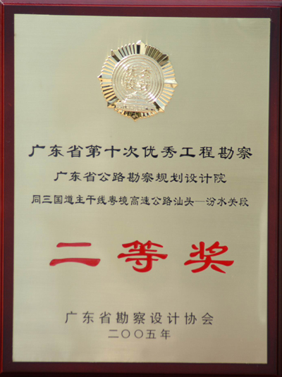 在广东省勘察设计协会组织的广东省第十次优秀工程勘察、第十二次优秀工程设计项目评审活动中,我院有六个工程项目获奖,其中两个项目获优秀工程设计一等奖、一个项目获三等奖;一个项目获优秀工程勘察一等奖、两个项目获二等奖,具体获奖项目如下: 优秀工程设计一等奖: 广东省西部沿海高速公路崖门大桥工程 汕汾高速公路 优秀工程勘察一等奖: 汕梅高速公路北斗至清潭段 优秀工程勘察二等奖: 广东省西部沿海高速公路台山大担至北陡段镇海湾大桥 同三国道主干线粤境高速公路汕头至汾水关段 优秀工程设计三等奖: 番禺北斗大桥