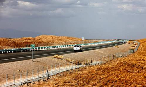 过震文介绍,全线233公里中,有60余公里路段位塔克拉玛干沙漠区,更有185公里路段采用风积沙填筑,相当部分填筑高度超过6 米,在新疆乃至全国高等级公路建设史上没有先例。